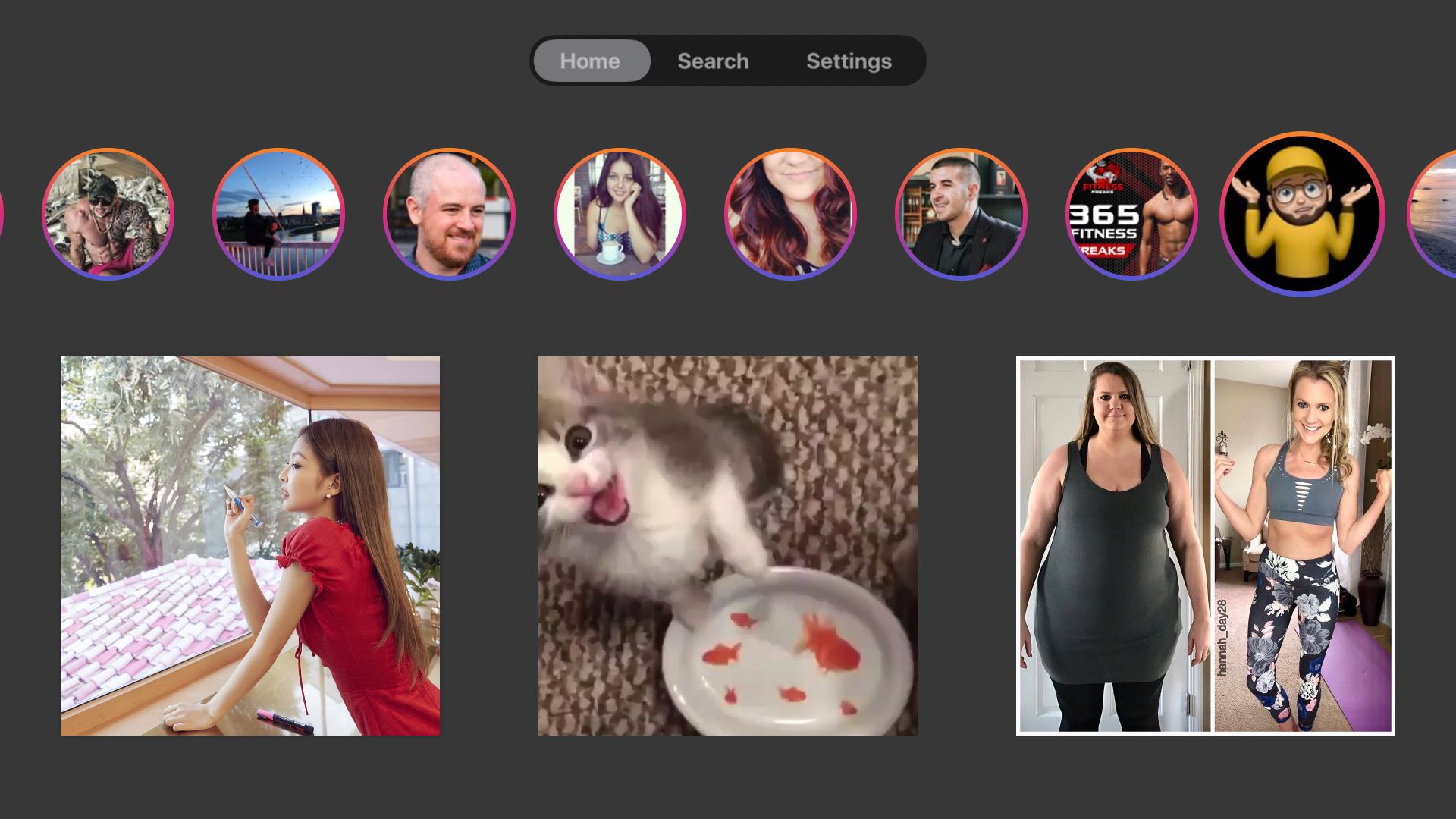 Under the Home tab, you can find all the stories, photos and videos from the people and accounts you follow. Similar to Instagram’s official mobile app, you’re presented with an endlessly scrolling feed of posts that you can click with the remote to go full screen.