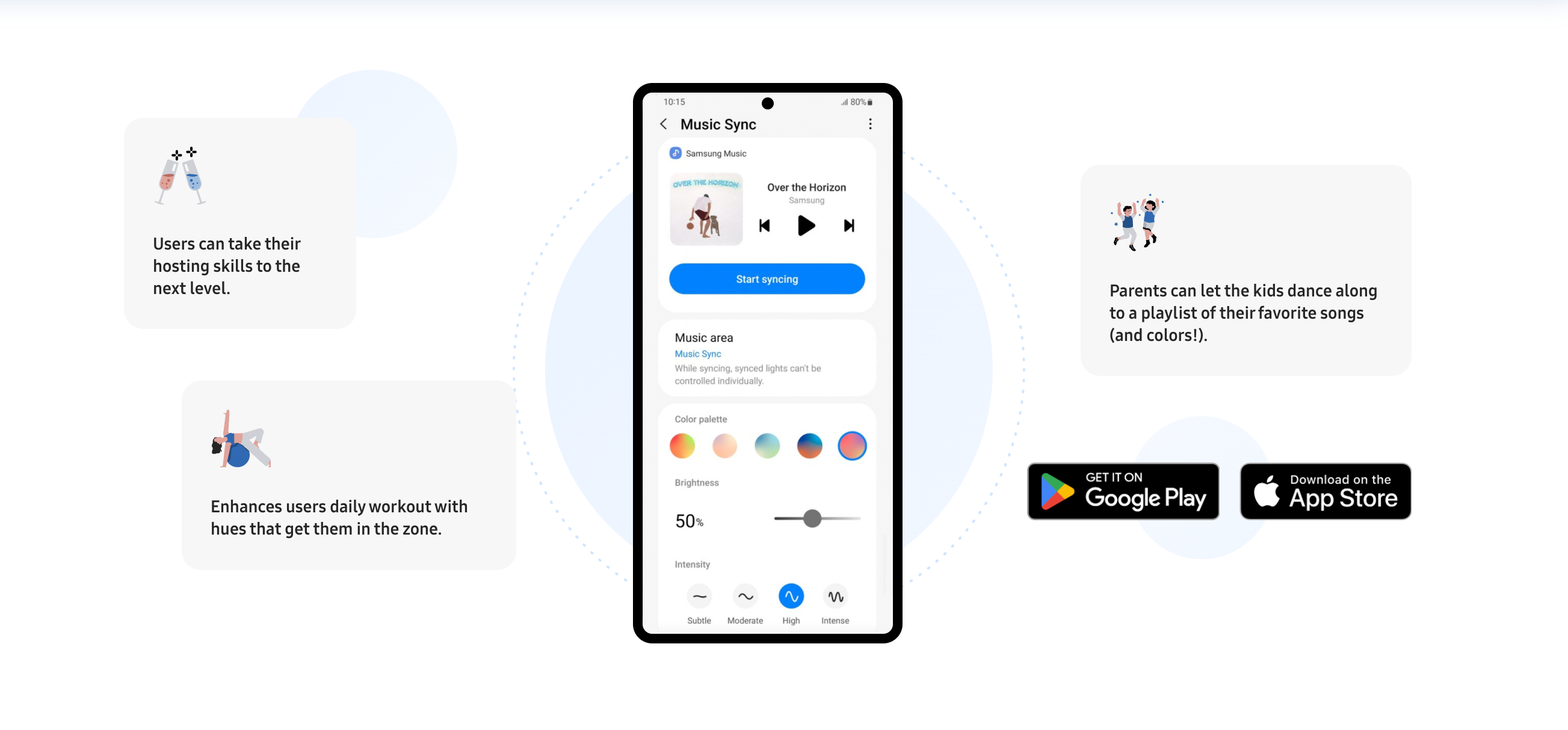 SmartThings Music Sync transforms your home into the ultimate entertainment center, where routines are designed to complement your lifestyle. Everything—from connecting a Bluetooth speaker to closing blinds and turning off the TV—can now be optimized and automated, making smart home living more seamless, convenient, and fun. Whether hosting a party at home, creating a daily workout with hues that get you in the zone, or letting your kids dance along to a playlist with their favorite songs and colors, the possibilities are endless.