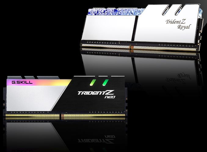 All enthusiast-class 32 GB unbuffered DIMMs from G.Skill will be equipped with aluminum heat spreaders with an RGB lightbar with multiple lighting zones. The Trident Z Royal will come with polished silver or gold heat spreaders as well as a crystalline RGB lightbar, whereas the Trident Z Neo will use matte heat spreaders and an RGB lightbar.